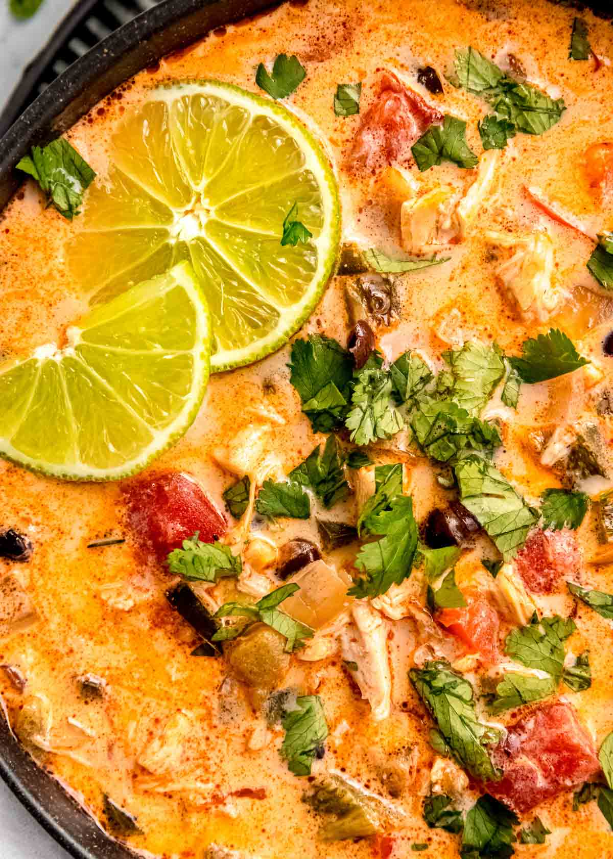 Stir in the cheese and heavy cream until melted and the broth is smooth. Once the soup is well combined, ladle into bowls and serve with cilantro and lime wedges if desired!
