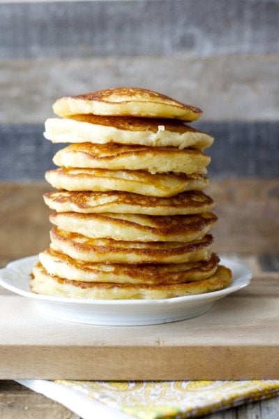 I used about 2 tablespoons of batter per pancake, which yields 12 pancakes. Feel free to make your pancakes a larger size by using more batter. You can also double this recipe to feed more people or halve the recipe to feed less!ย