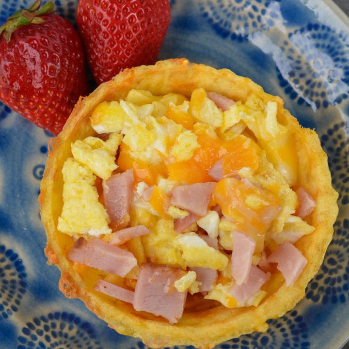 These cute little Breakfast Chaffle Bowls are surprisingly filling and perfect for a keto meal prep breakfast! The chaffle bowl is made using the Dash Mini Waffle Bowl Maker and a recipe similar to a normal keto chaffle. These gluten-free, keto-friendly bread bowls can be made ahead of time, making sure you have a quick breakfast ready when you are!
