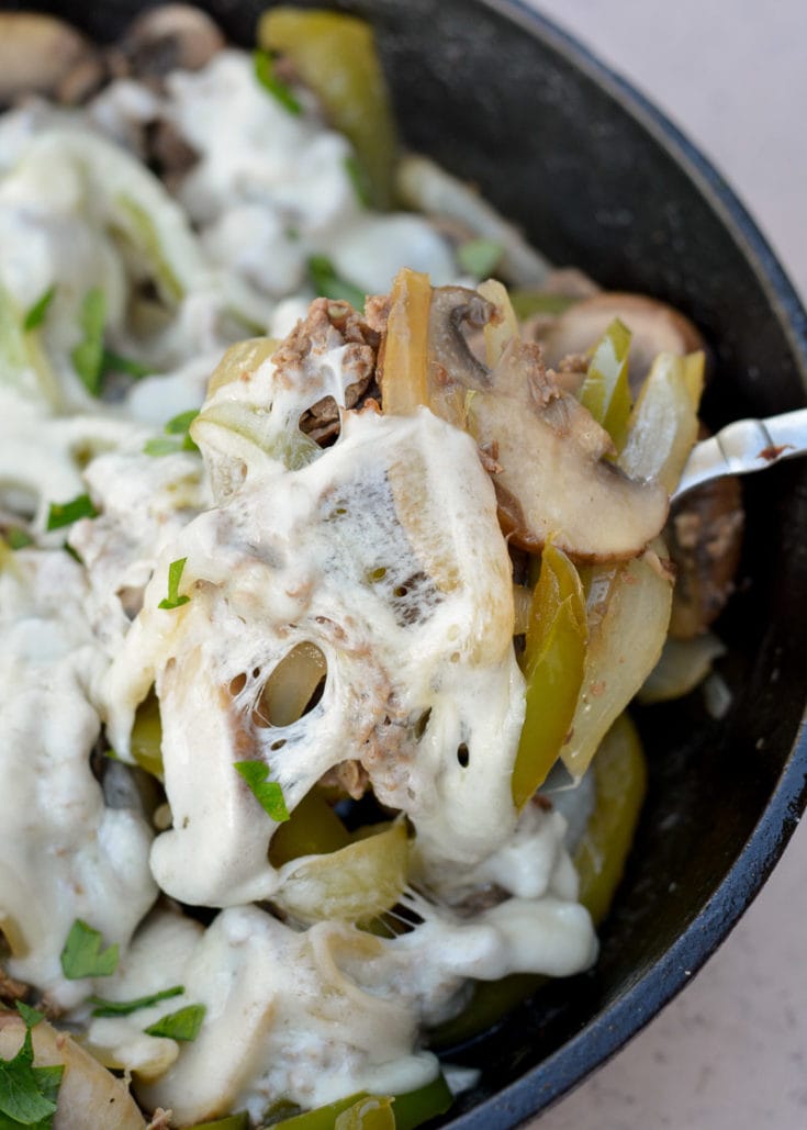 This One-Pan Keto Cheeseburger Casserole Skillet is about 4 net carbs per serving and is loaded with ground beef, bacon, and cheese! This keto dinner is ready in under 20 minutes!