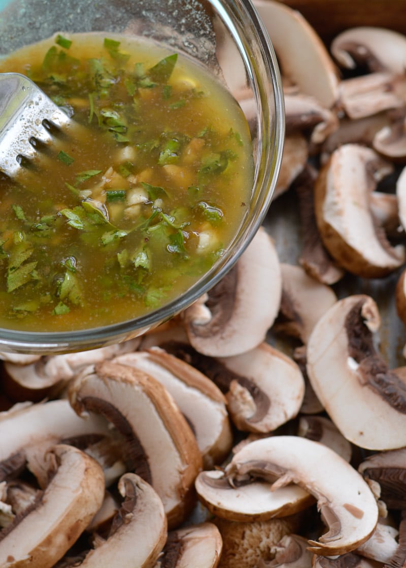 - Mix together the melted butter, oil, vinegar, garlic, herbs, salt, and pepper, and once they are well-combined drizzle the mixture over the mushrooms. Toss the mushrooms until they are coated.