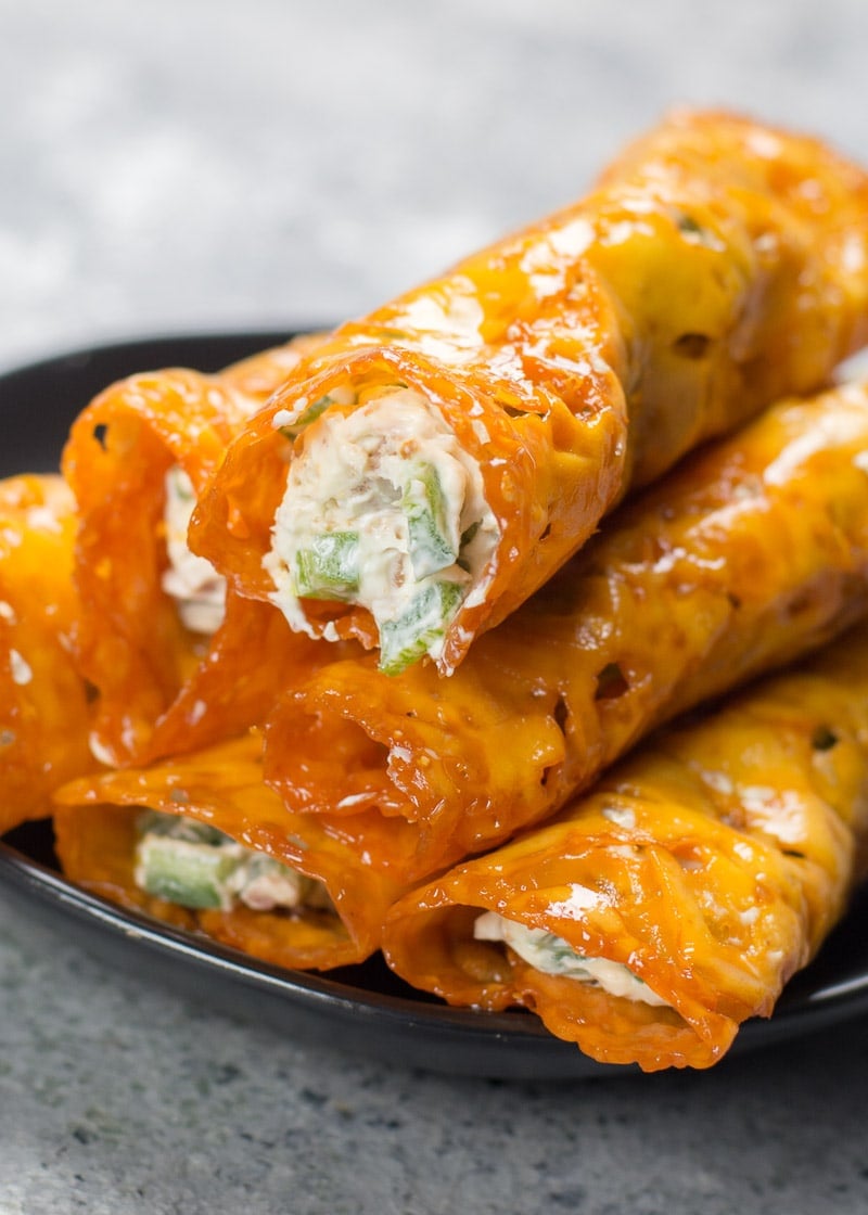 Normal taquitos feature a corn or sometimes flour tortilla stuffed with filling, rolled and baked or fried. The magic here is that there is no tortilla of any kind. Simple sliced cheese is baked until the edges brown and it becomes crispy, then it’s stuffed with your favorite filling and rolled up!