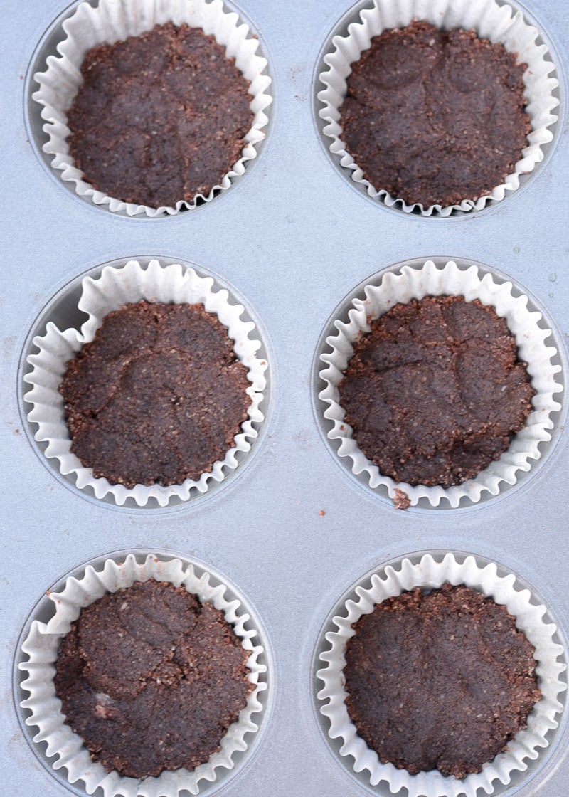 - Prepare a 12 count standard muffin tin with cooking oil or line with paper liners. Press about a tablespoon of the crust into each well. Be sure to press down well so the crust is tightly packed, set aside.
