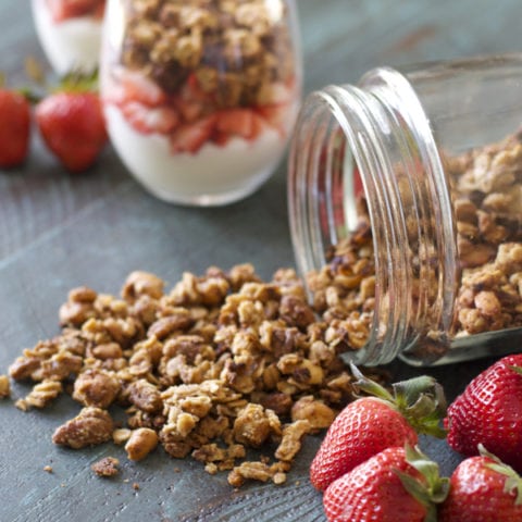 Five pounds of peanut butter is crazy! But, I can’t blame him I love the stuff too and we eat it every day. This peanut butter and jelly granola is such an awesome idea! You can’t go wrong with the classic combination!